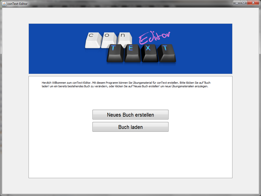 Bitte laden Sie sich den conText-Editor und installieren Sie ihn auf Ihrem Rechner. Gehen Sie zur Erstellung eines Buches folgendermaßen vor (bitte klicken Sie die Bilder