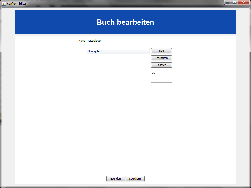 werden soll. Sie können auch ein bestehendes Buch laden, z. B. eines, das im Programmordner von conText im Verzeichnis libraries abgelegt ist. Bitte beachten