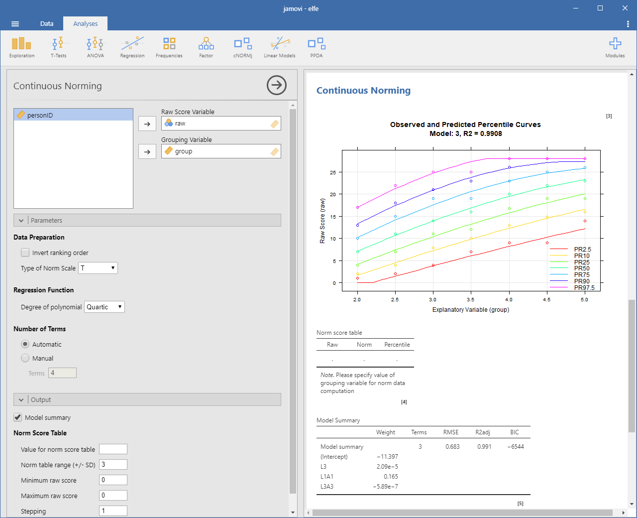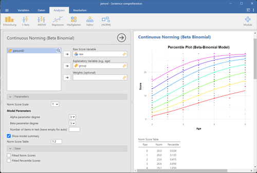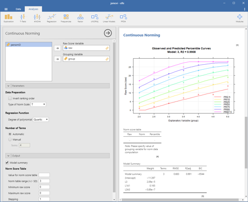 the module "cNORMj" to the Jamovi software library, which offers you the essential cNORM functionality to generate norm scores for single groups or to apply