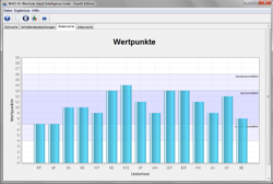 - Auswertung: Die Anzahl der Auswertungen ist ungebrenzt. Das Programm ist auch zeitlich uneingeschränkt anwendbar. Es ermittelt das Testalter, rechnet Testergebnisse in Index- und Skalenwerte um, ermittelt Skalen- und Untertestdifferenzen, stellt Profilverläufe bei Mehrfachtestungen dar und rechnet die Ergebnisse automatisch in weitere Normwertskalen um.