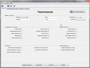 - Weitere Funktionen: Das Programm verfügt über eine ausführliche Online-Hilfe, über einen Normwertrechner, mit Hilfe dessen sich Normwertskalen einfach ineinander umrechnen lassen, sowie eine integrierte Update-Funktion. Daten verschiedener Testpersonen können außerdem zusammengefasst und zur Weiterverwendung in Statistiksoftware oder Datenkalkulationsprogrammen exportiert werden.